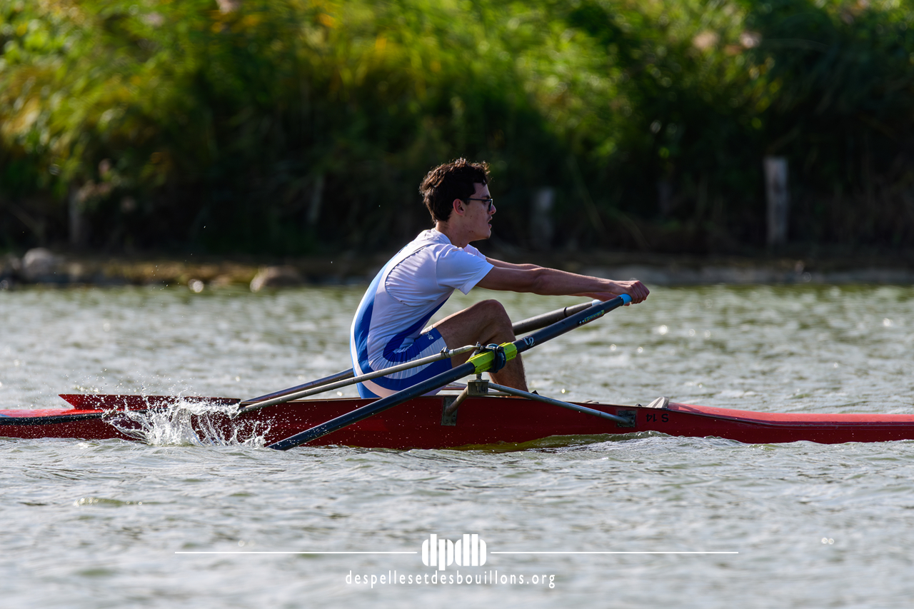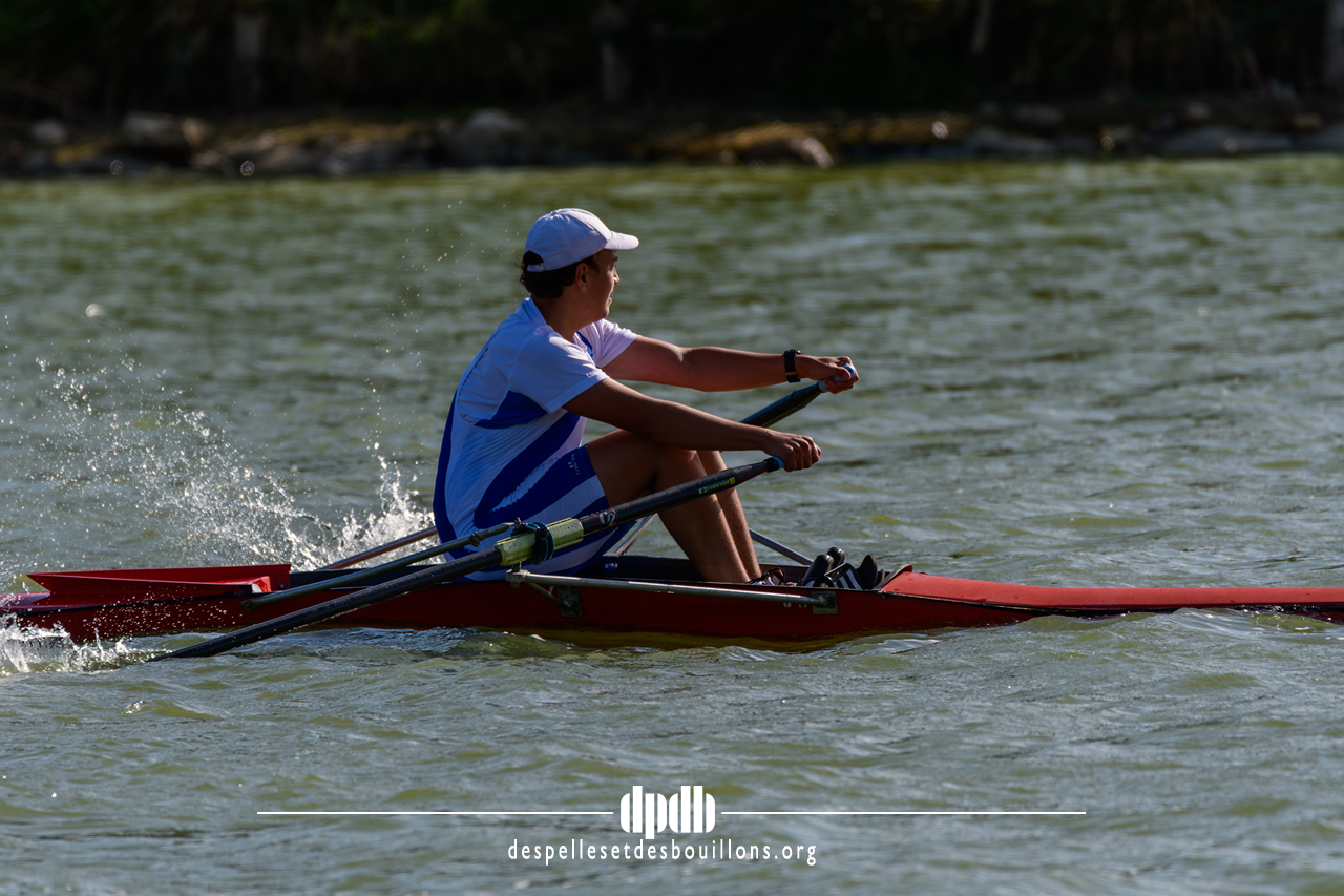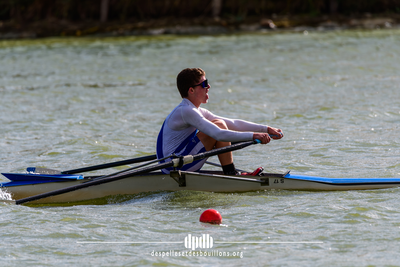 Tous les rameurs du club concouraient en skiff sur un bassin rendu technique par un vent soutenu et un clapot marqué, demandant une grande maîtrise pour maintenir l’équilibre et la cadence. Deux bateaux se sont retournés lors des finales, soulignant la difficulté de gérer ces conditions en embarcation individuelle.