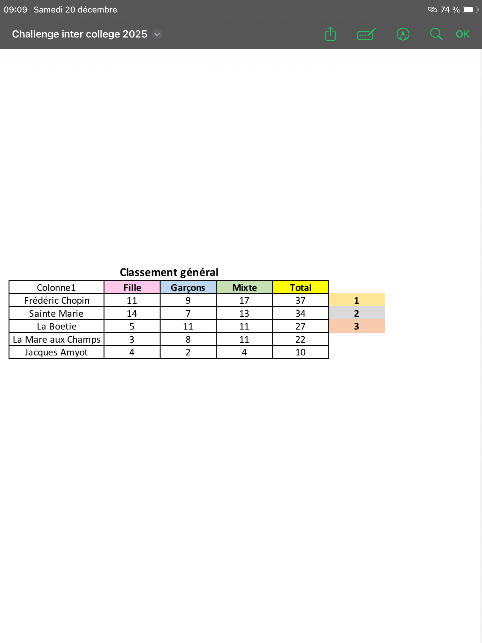Classement général inter-collèges 2025