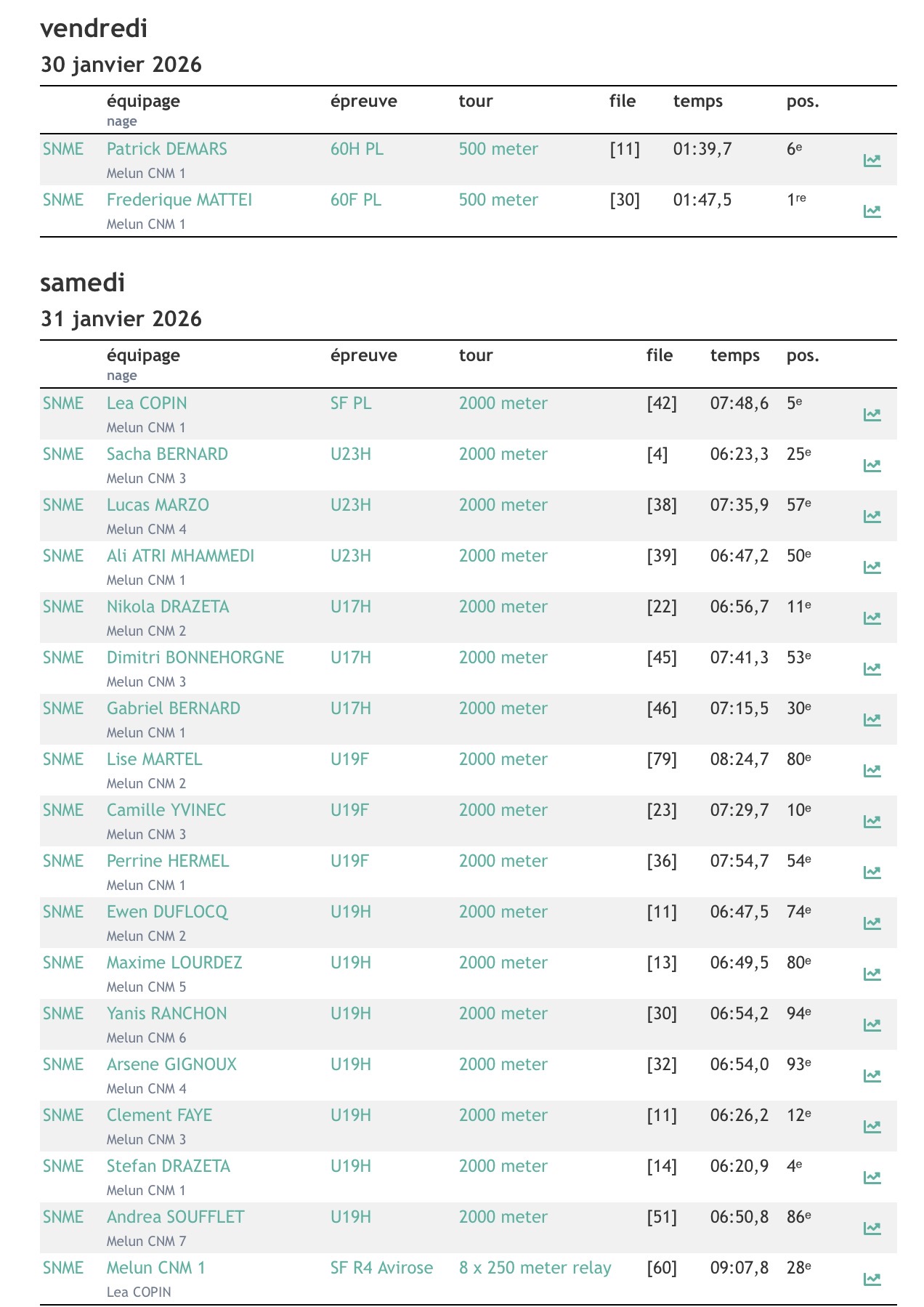 Dans un environnement peu propice à la performance pure - ambiance survoltée, musique omniprésente, bruit, projecteurs et boule à facettes - il n’est jamais simple d’être au meilleur de sa forme ni d’améliorer un record. Malgré ces conditions, les rameurs engagés réalisent de belles performances, avec de nombreux chronos en progression, signe d’un travail sérieux et constant.