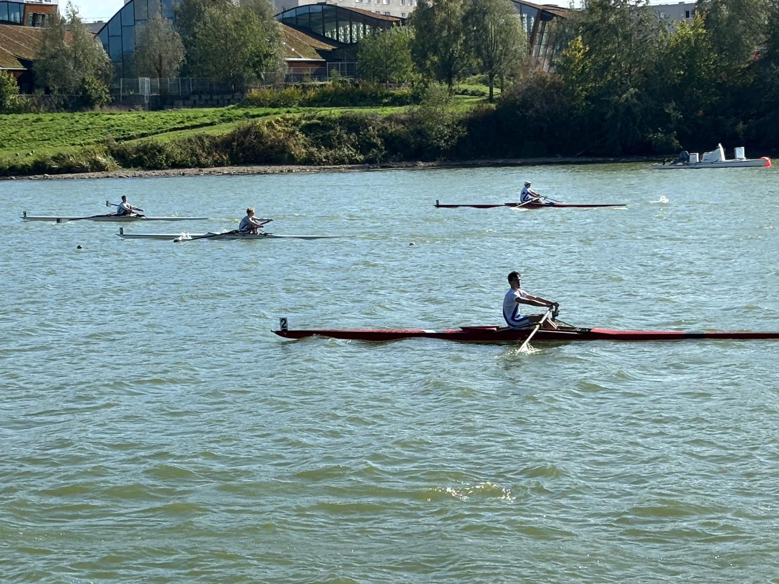Tous les rameurs du club concouraient en skiff sur un bassin rendu technique par un vent soutenu et un clapot marqué, demandant une grande maîtrise pour maintenir l’équilibre et la cadence. Deux bateaux se sont retournés lors des finales, soulignant la difficulté de gérer ces conditions en embarcation individuelle.